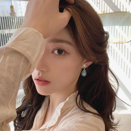 透き通った青に針の入ったドロップストーンの上品なゴールドのピアスです。