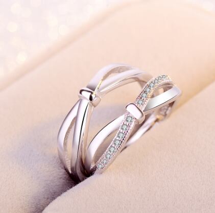 ◆新品◆BOX付き☆S925☆上品リボン☆CZダイヤ☆カップル☆ペアリング☆R8